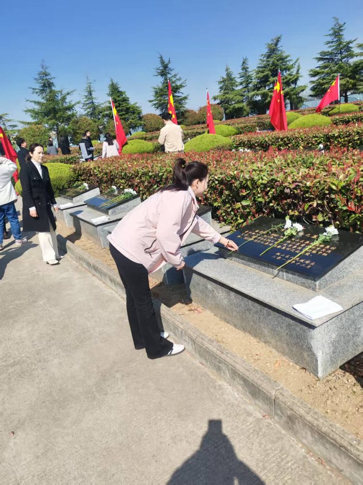 活動(dòng)伊始,全體黨員整齊列隊(duì),懷著崇敬之情向革命烈士敬獻(xiàn)花籃,寄托著對(duì)先烈們的無限哀思與崇高敬意。隨后,在鮮紅的黨旗前,全體黨員莊嚴(yán)地舉起右拳,重溫入黨誓詞。鏗鏘有力的誓言在陵園上空回蕩,彰顯了黨員們不忘初心、牢記使命的政治信念。最后,黨員們有序參觀了陵園內(nèi)的紀(jì)念碑,支部書記楊旸同志帶領(lǐng)支部黨員紛紛向英雄先烈們獻(xiàn)上鮮花。