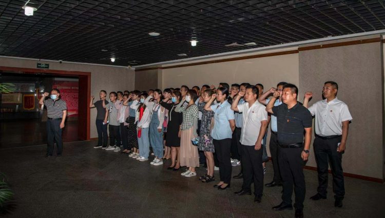 為慶祝中國共產(chǎn)黨成立100周年,傳承紅色基因,汲取革命力量。6月30日下午,中心湖帶黨總支在黨總支書記林曉海同志的帶領(lǐng)下前往淮北市博物館——建黨百年 淮北足跡,慶祝中國共產(chǎn)黨成立100周年主題展,開展“學(xué)黨史 守初心 踐使命”主題黨日活動,林曉海同志組織舉行新黨員入黨宣誓儀式,結(jié)合過“政治生日”開展黨員重溫入黨誓詞活動,進(jìn)一步激勵黨員牢記誓言,不忘初心,勇?lián)姑?,始終保持先進(jìn)本色。黨總支全體黨員共計45人參加活動。